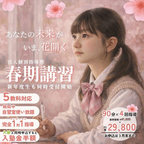 私は宮入個別指導塾に高1の終わりから2年間通わせてもらいました。